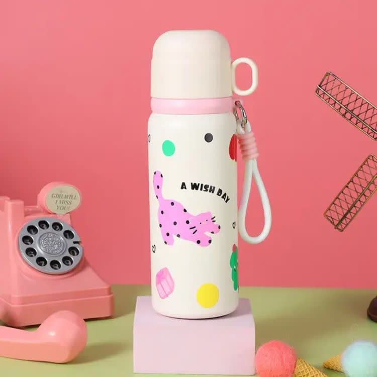 فلاسک استیل لیوان دار 550 میلی لیتر دارای بند دستی سیلیکونی