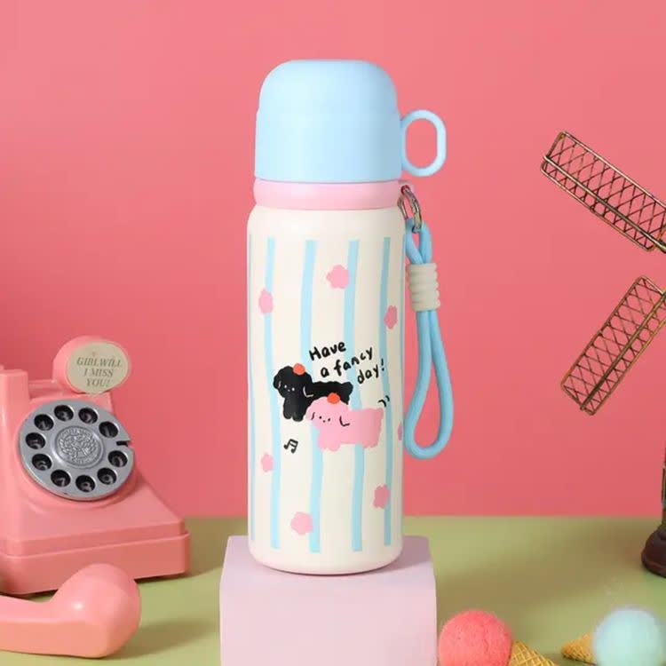 فلاسک استیل لیوان دار 550 میلی لیتر دارای بند دستی سیلیکونی