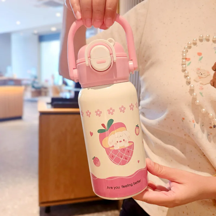 قمقمه فانتزی استیل ۳۱۶ ✨ 🔒 قفل ضامندار ایمن 🥤 آساننوش و نیدار 👜 دستهدار و قابل حمل 💧 حجم ۵۰۰ میل هم سبک، هم مقاوم، هم مناسب مدرسه و باشگاه 💕