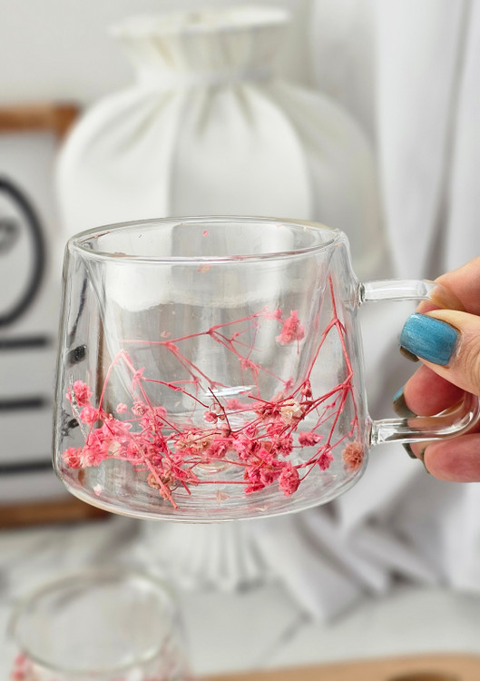 لیوان پیرکس دسته دار دوجداره گل خشک وارداتی