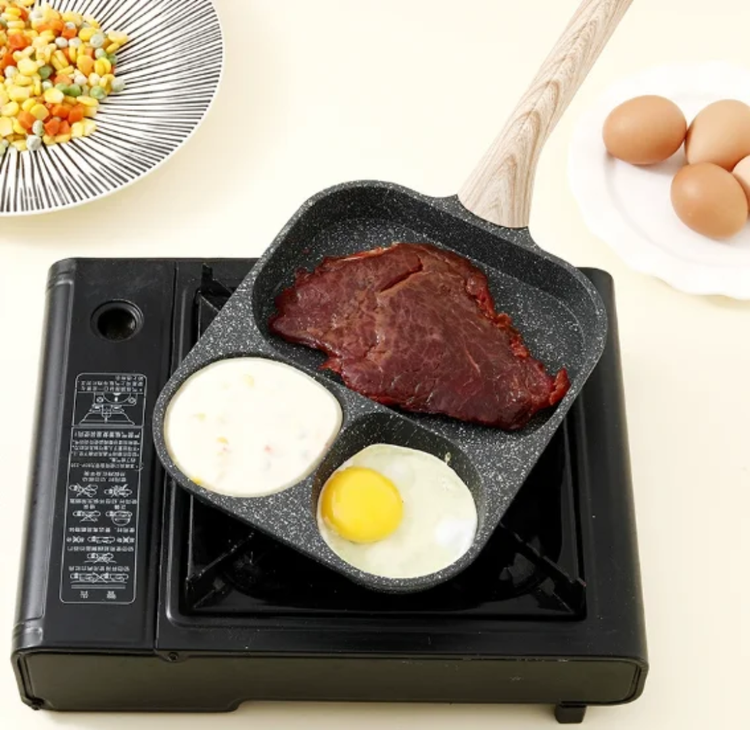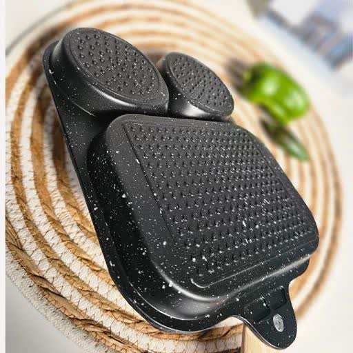 ماهیتابه پنکیک سه خانه دسته دار گرانیتی