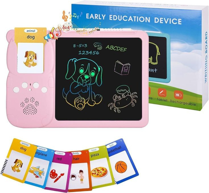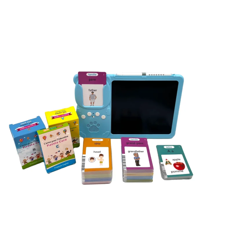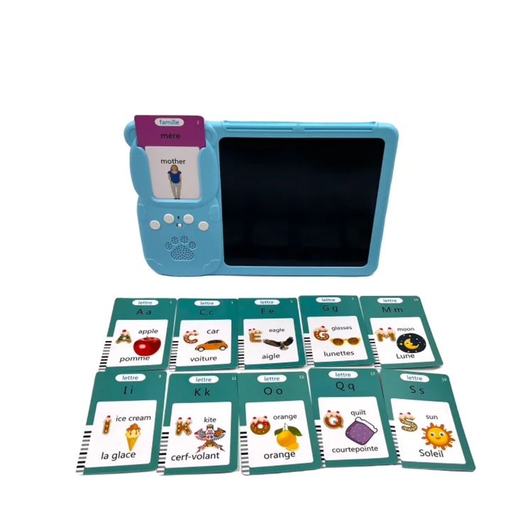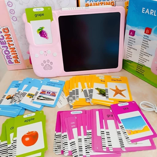 بهترین زمان اموزش زبان در کودکی و بصورت تصویری و فلش کارت است این بازی با دارا بودن هر 3 حالت یکی از بهترین راه اموزش است. بروری فلش کارت متن و عکس مربوط به منن نوشته شده که بعد از قرار دادن در جلی خود ان را میخواند و صدای ان را نیز در میاورد و در قسمت صفحه نیز میتواند با قلم مخصوص شکل و اسم ان را بکشد .پس هم بازی است و هم اموزش تصویر و صوت و نوشتار که در ذهن کودک نقش میبندد
